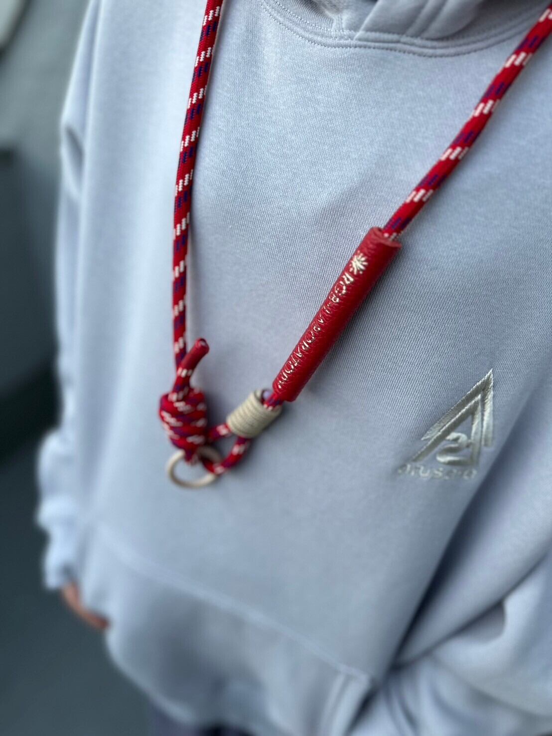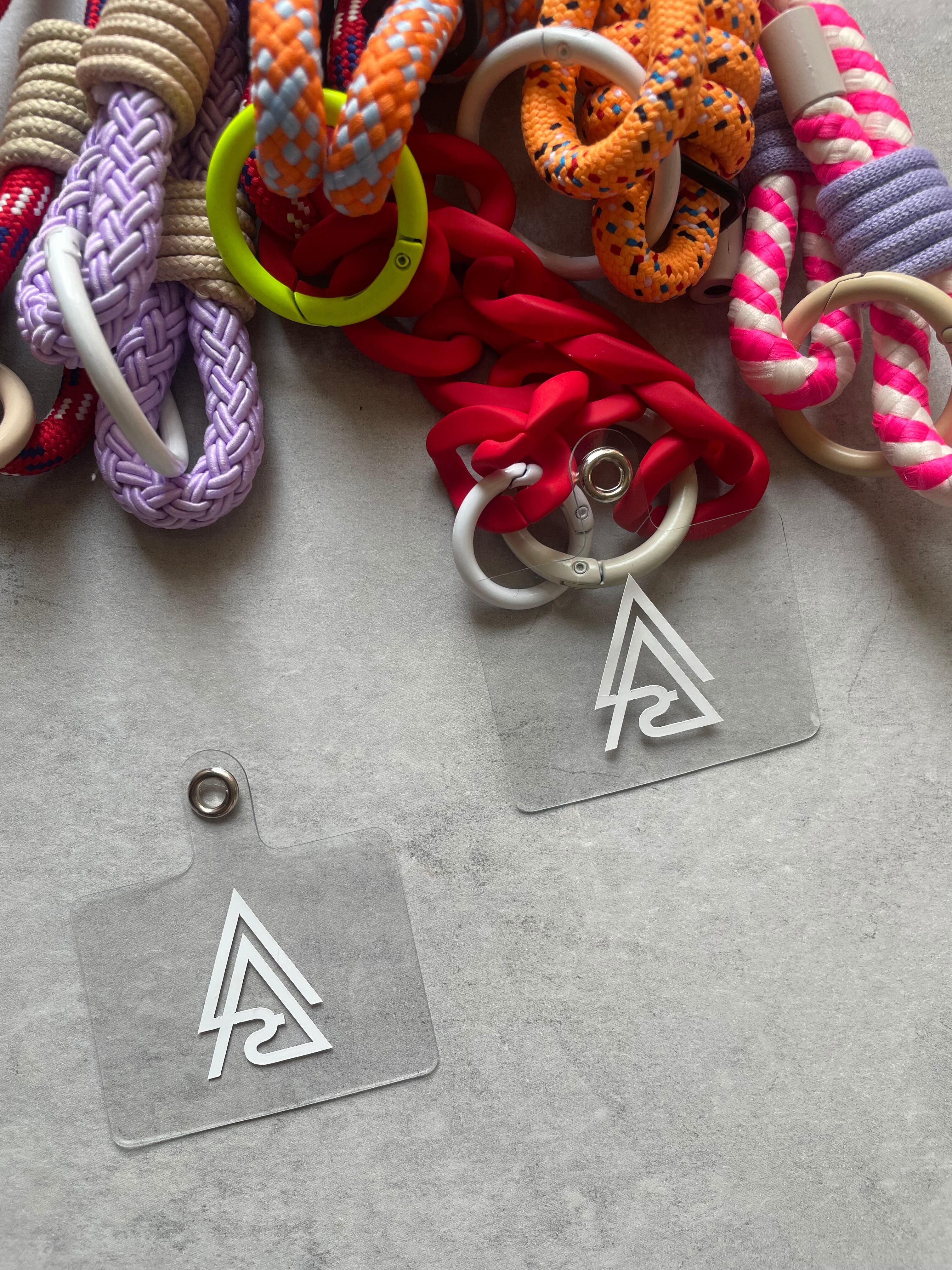 紐先のチェーンにはanusayaロゴマークの入った、スマホストラップホルダー付き(白ロゴ)
