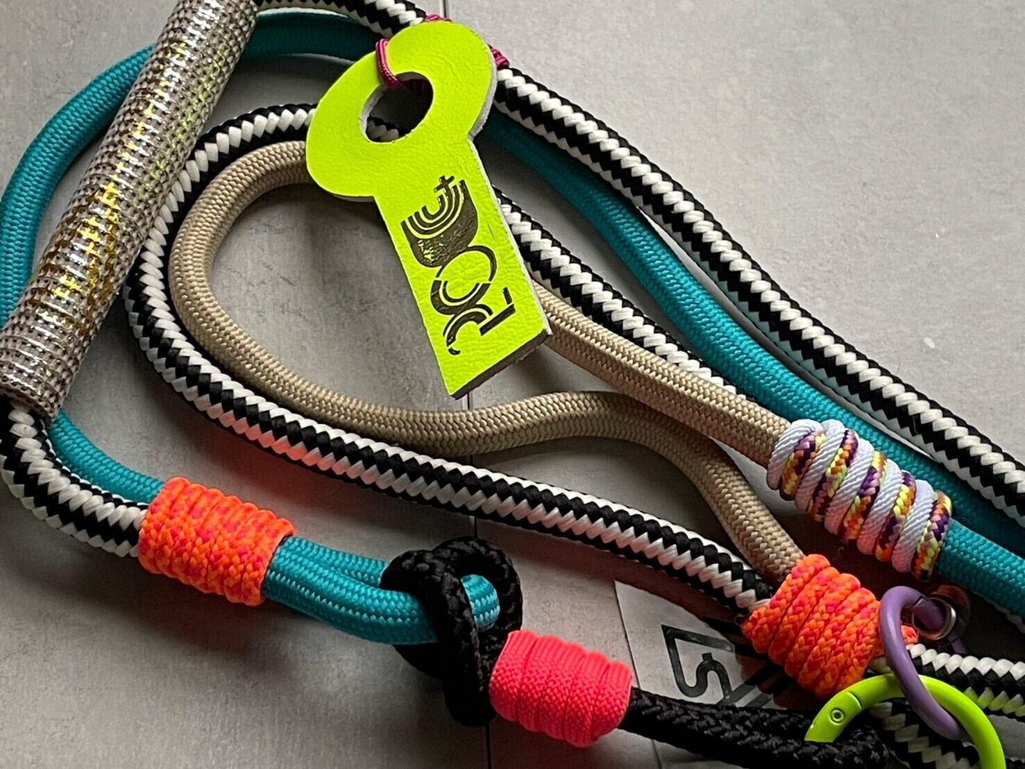 複数のカラフルな紐やマットチェーンで組み上げた、個性的且つ遊び心の詰まったストラップとなっております。