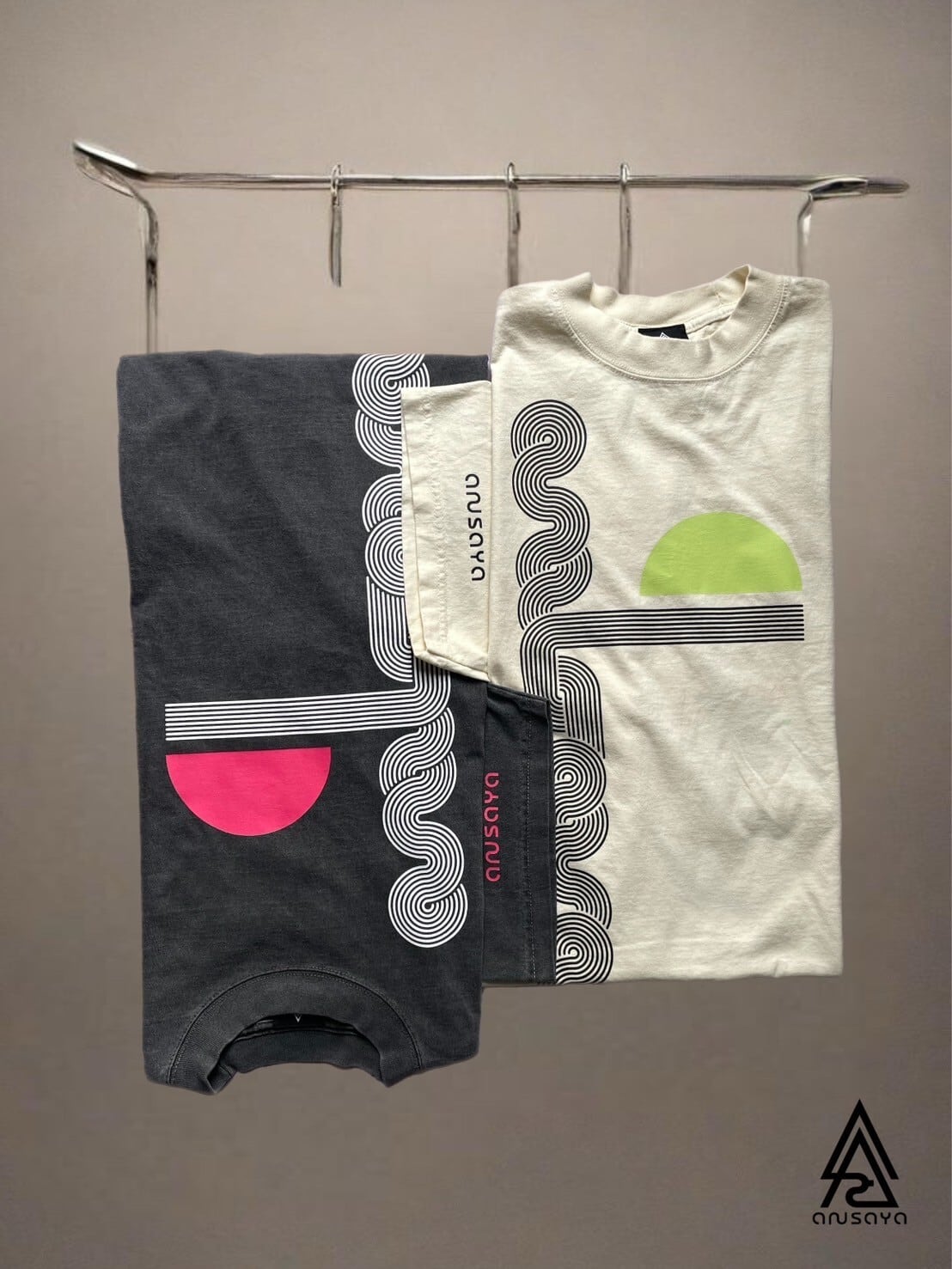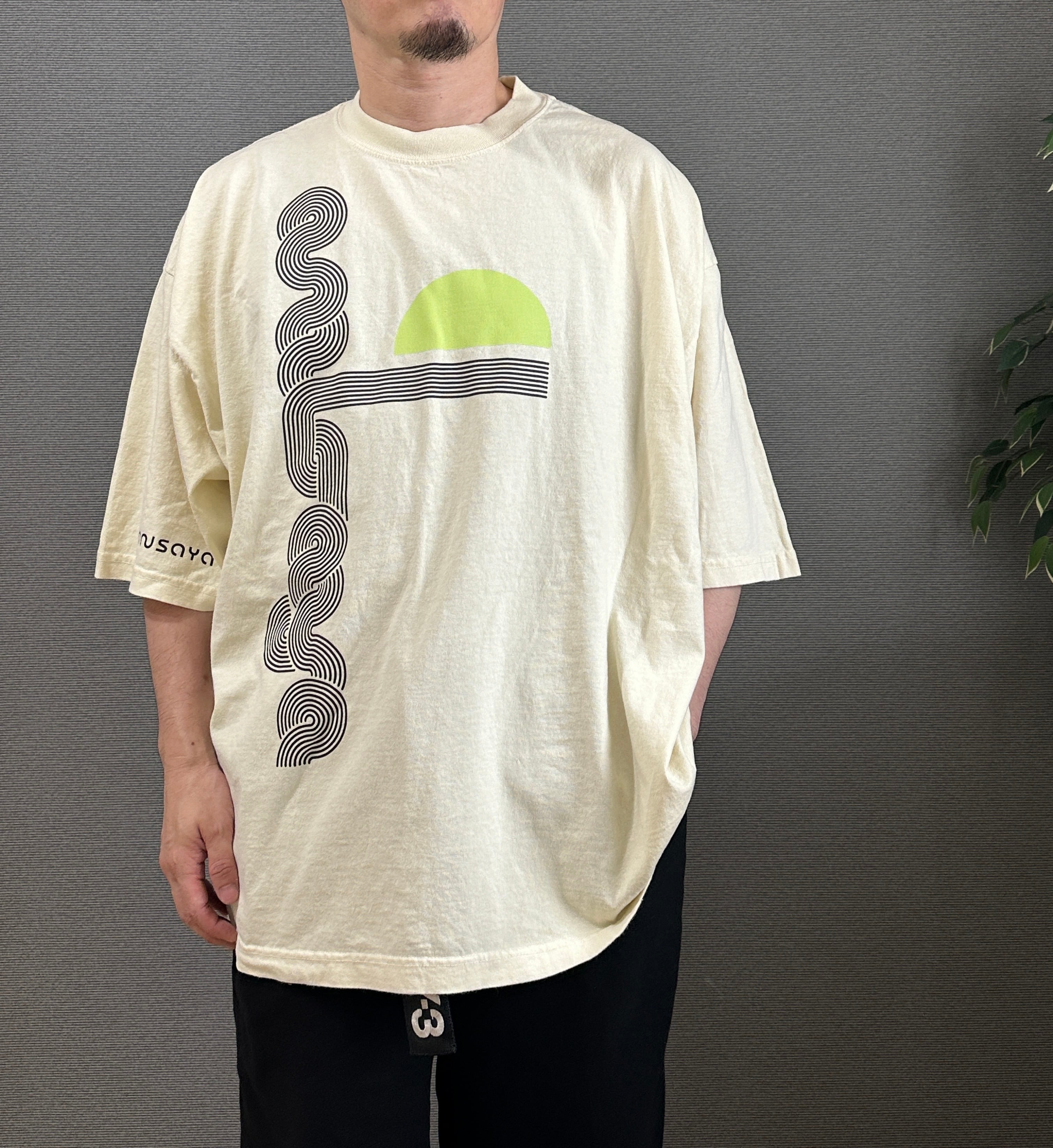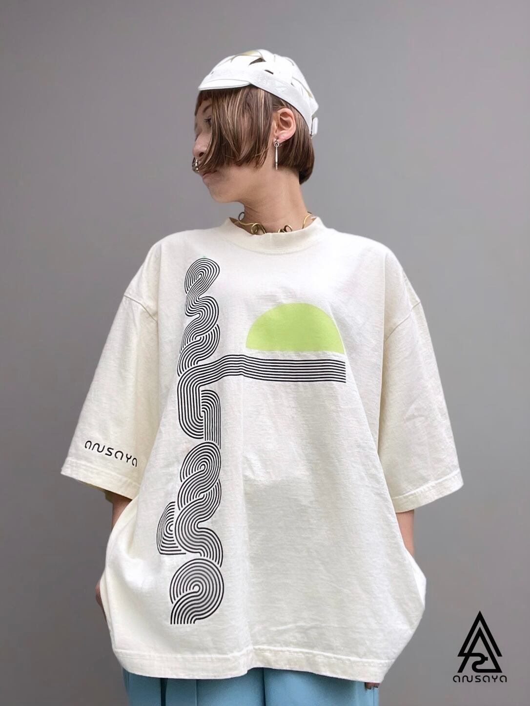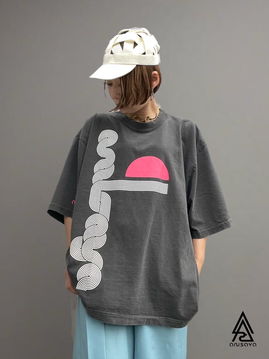 スーパーヘビーな生地感、太めの首リブ、大胆なボックスシルエットにピグメント染め加工がされ、特に女性が着ることで少年ぽさも楽しめるメンズライクなTシャツに、ストリート感あるanusayaロゴのグラフィックデザインをシルクプリントしました。